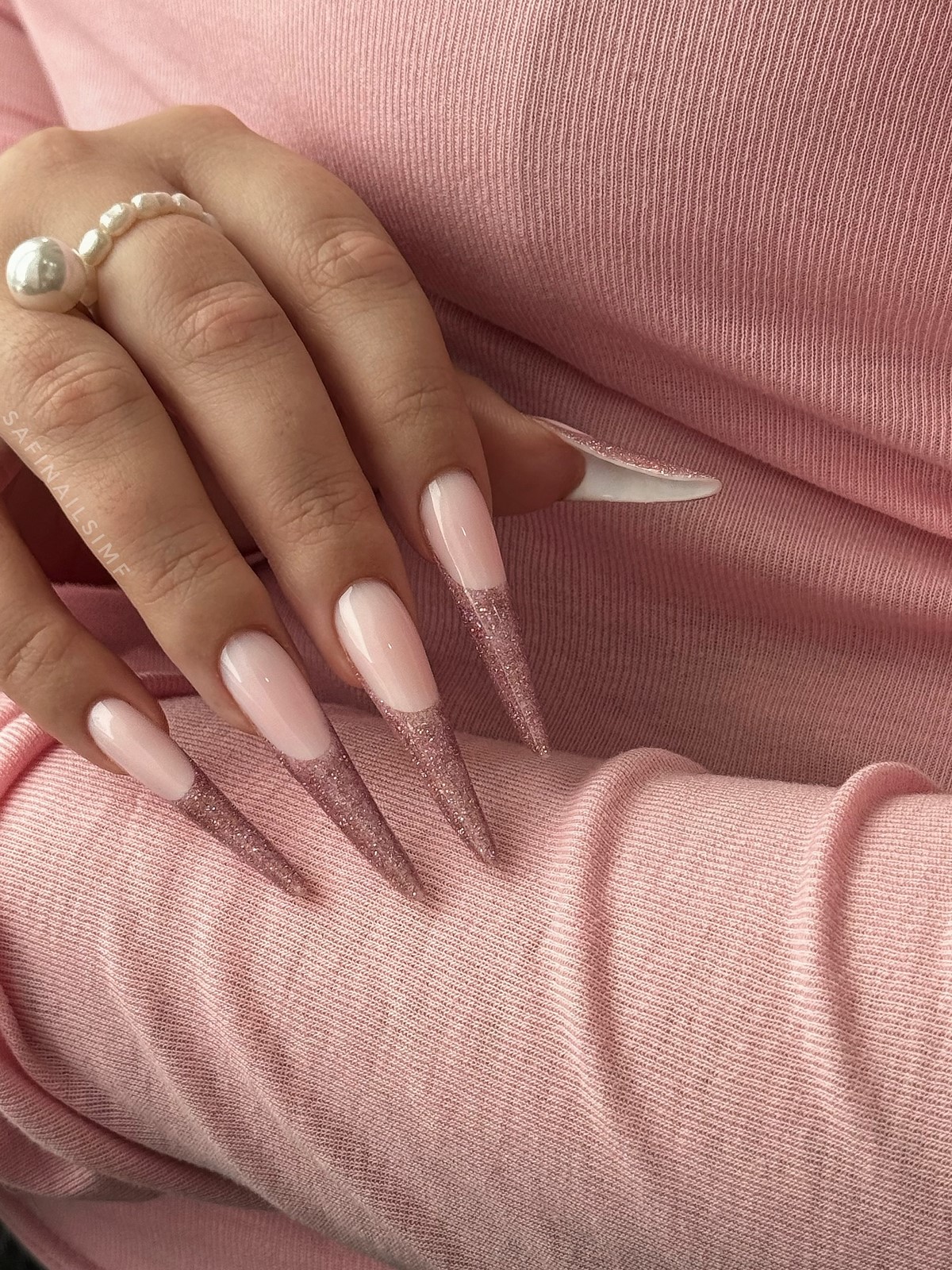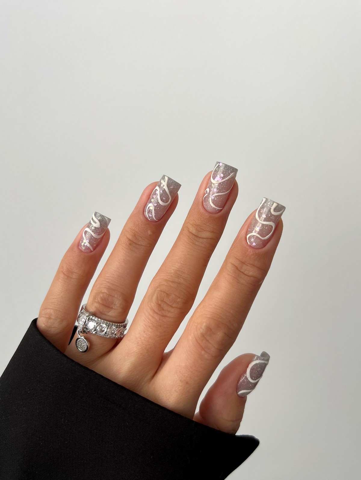 Глиттер, микроблеск и мерцающие покрытия снова в центре внимания. Но в 2026 году сияние становится утончённым — мелкодисперсный блеск, полупрозрачные основы и «мокрый эффект». Такой маникюр выглядит дорого и не перегружает образ, добавляя мягкое свечение при любом освещении.