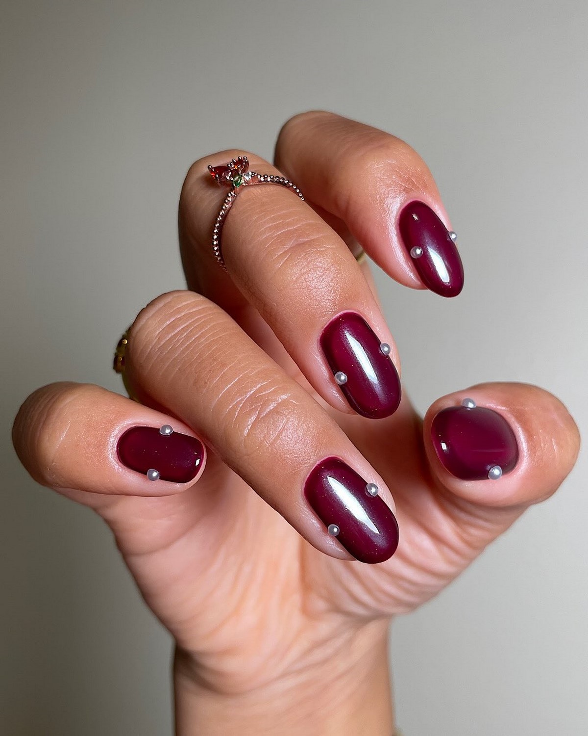 Украшения на ногтях возвращаются, но с новым подходом: акцент на деликатность и композицию. Несколько мелких бусин на акцентном пальце или тонкая линия страз вдоль кутикулы создают праздничное настроение без лишнего блеска. Это идеальный выбор для новогодней ночи, когда хочется немного волшебства.